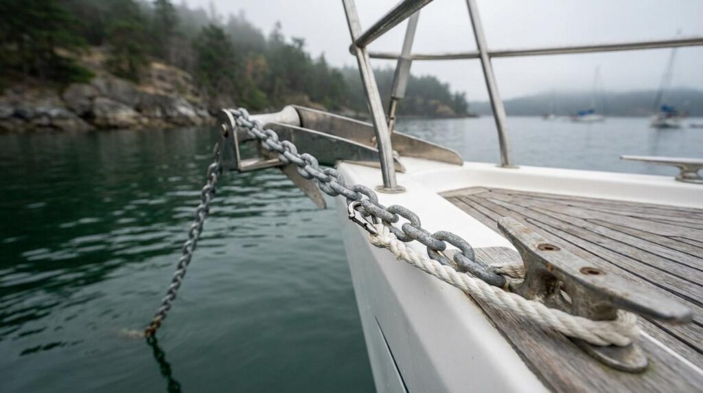 Når du fortøjer i en havn, holder pæle, bro og fortøjninger båden i ro. For anker er det ankerets greb i bunden, rode (kæde og tov) og din opsætning, der gør arbejdet. Det er derfor, erfarne sejlere bruger mere tid på at vælge ankerplads og rode-længde end på selve “kastet”.