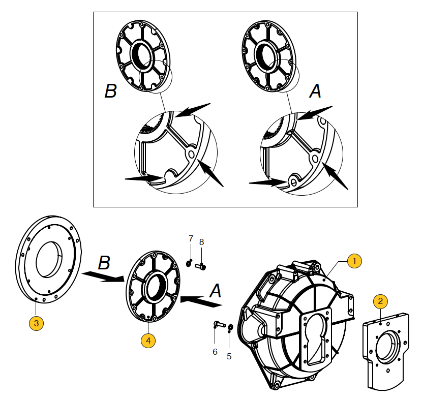 Adapter parts for hydraulic propulsion Vetus M4.55 M5.56