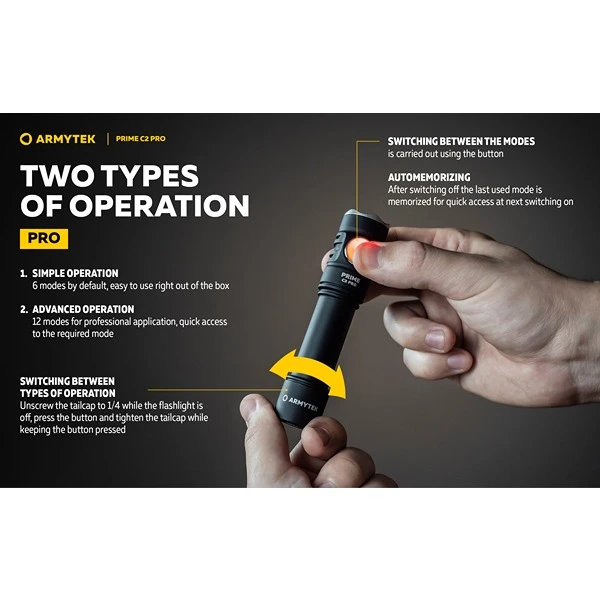Oplev pålidelig og kraftfuld belysning med Armytek Prime C2 Pro. Denne lommelygte leverer op til 2230 lumen varmt lys med en rækkevidde på 121 meter. Med 12 avancerede lysfunktioner og fuld lysstabilisering får du konstant lys uden svigt. Den robuste konstruktion i flykvalitets aluminium er både vandtæt (IP68) og støvtæt, og tåler nedsænkning ned til 10 meter samt fald fra 10 meter.
