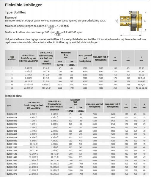 Bullflex er løsningen på den voksende efterspørgsel efter forbedret sejlkomfort. Den er designet med fokus på at sikre optimal dæmpning af vibrationer. Torsionsvibrationer udjævnes effektivt takket være det ekstremt fleksible gummielement, der garanterer en lyd- og vibrationsfri transmission uden slør mellem motoren og skrueakslen. En markant egenskab er den fremragende justering af skrueakslen. Der er også specielle adapterflanger tilgængelige, herunder specialfremstillede til de mest populære Volvo, Yanmar og Kanzaki gearkasser (se side 89).