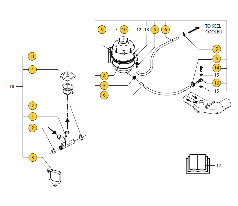 Calorifier connection II Keelcooling Vetus M2.02 M2.04 M2.06 M2.C5 M2.13 M2.18 M2.D5