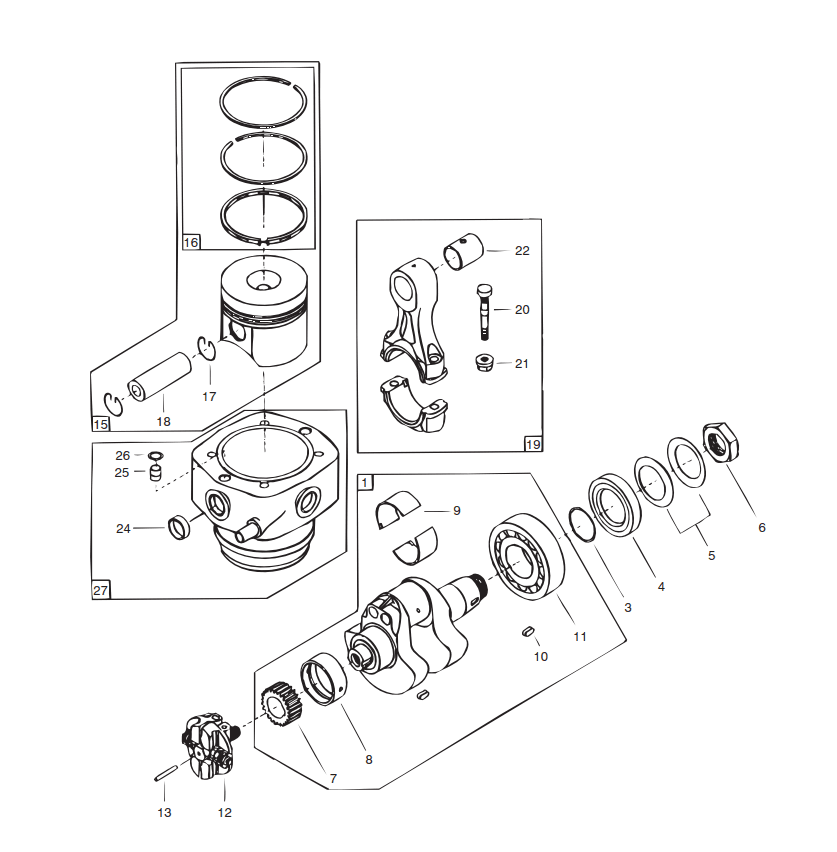 Crankshaft + piston + cylinder Vetus F1.02 F1.03