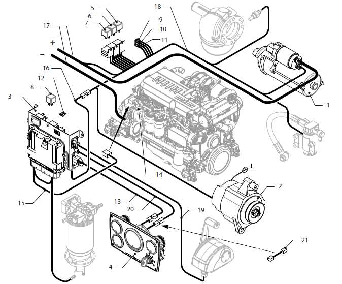 Engine wiring 12V-1p Vetus VD4.120 VD4.140 VD6.170 VD6.210