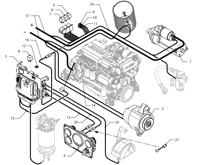 Engine wiring 12V-2p Vetus VD4.120 VD4.140 VD6.170 VD6.210