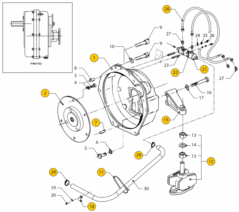 Flywheel housing PRM150, keelcooling Vetus M3.28