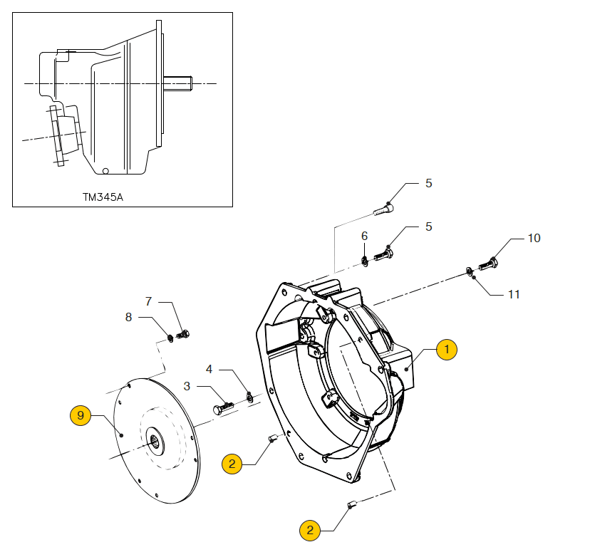 Flywheel housing TM345(A) Vetus M4.55 4.56