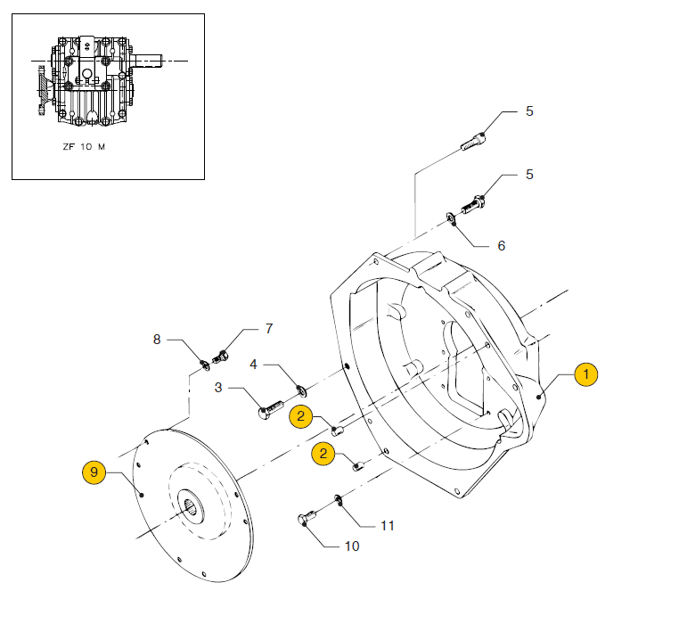 Flywheel housing ZF10M Vetus M4.17 M4.45