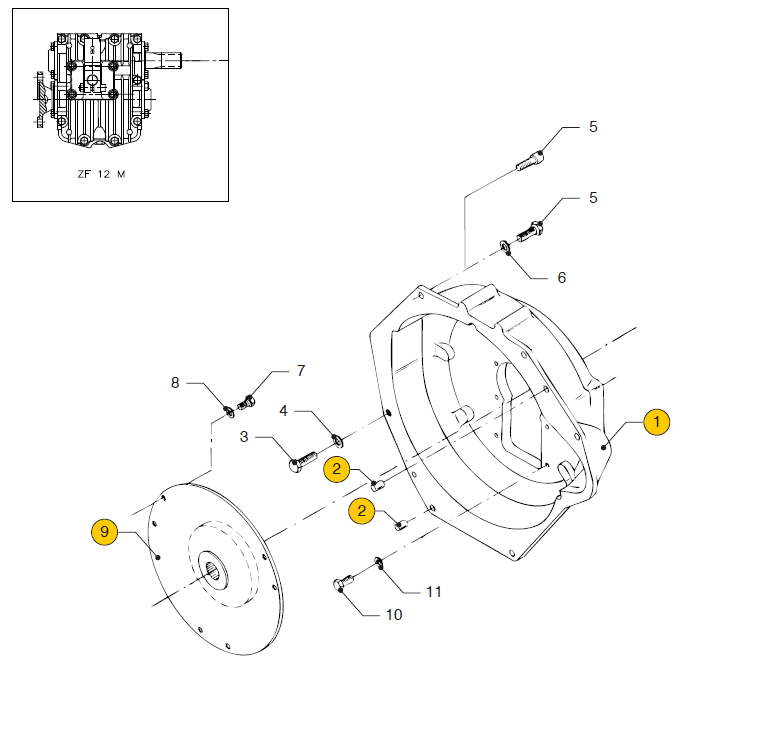 Flywheel housing ZF12M Vetus M4.17 M4.45