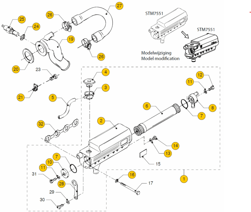 Heat exchanger unit Vetus M4.15 M4.17 M4.35 M4.45
