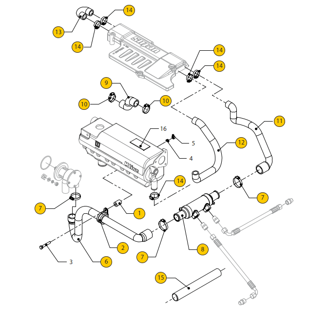 | 12 | 1 | 08-01427 | Hose M4.56, from top cover to heat-exchanger | 136,00 kr. | |