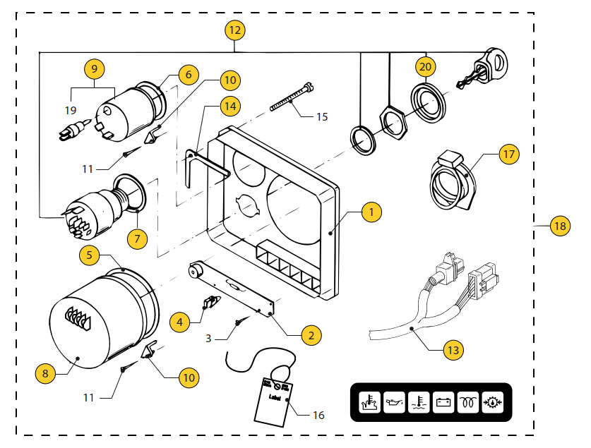 | 18 | 1 | MP22BS12A | Instr.panel cpl. black instr. 0-4000 rpm 12 V | ||