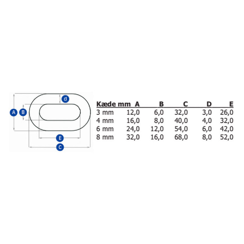 Denne kæde i rustfrit, syrefast AISI 316 stål er udviklet til maritime miljøer, hvor saltvand, fugt og belastning stiller høje krav til materialet. AISI 316 er kendt for sin høje modstandsdygtighed over for korrosion og er derfor et oplagt valg til bådudstyr.