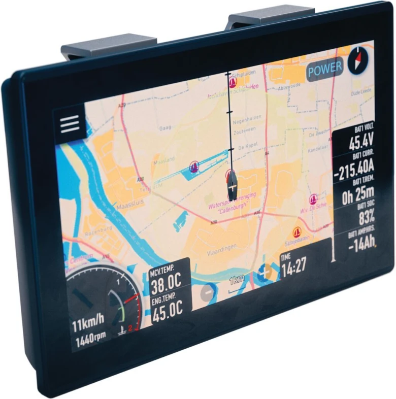 Oplev den næste generation af elektrisk bådsejlads med VETUS CANNME7 multifunktionsdisplay. Dette 7” display præsenterer en række vigtige parametre som RPM, temperatur og hastighed i skarpe og klare farver. Med en lysstyrke på 1800 nits sikrer det fremragende synlighed, selv i fuld solskin. Det er IP6X vand- og støvtæt og kompatibelt med både CANNS500 Digital Battery Monitoring Shunt og CANV2N CANverter serien. Den multitouch betjening gør det let at navigere, mens den integrerede GPS-sensor og gratis navigationssoftware med OpenSeaMap giver dig præcise oplysninger i realtid. Det elegante design med minimal bezel passer perfekt ind i din båd.