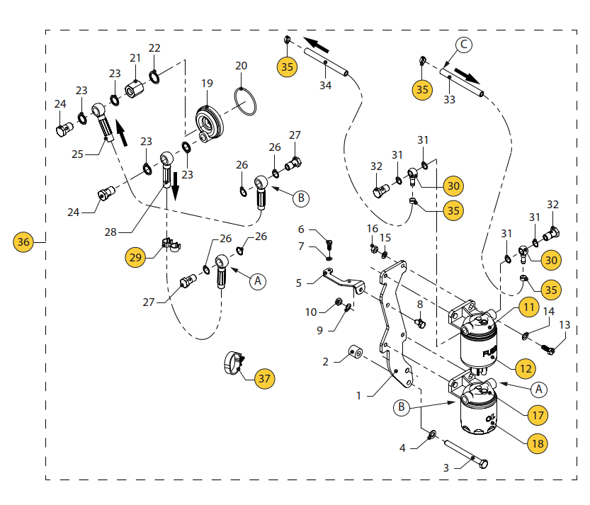 Oil filter + fuel filter separately installed Vetus M2.02 M2.04 M2.06 M2.C5 M2.D5