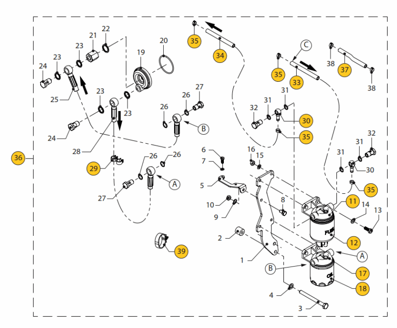 Oil filter + fuel filter separately installed Vetus M3.28 M3.29