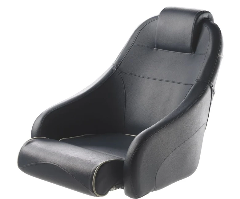 Oplev den ultimative komfort med King helm-stolen med flip-up squab, der er designet til at gøre sejladsen endnu mere behagelig. Det innovative flip-up sæde gør det muligt at styre båden i stående position, hvilket giver dig bedre udsyn og kontrol. Med et komfortabelt hovedstøtte og en elegant mørkeblå farve med hvide syninger, vil denne stol være et stilfuldt og funktionelt valg til dit maritime udstyr. Stolen er fremstillet af vedligeholdelsesfrit, vand- og UV-bestandigt skai-imitationlæder, hvilket gør den ideel til brug på vandet. Den passer til pedestaler med glidesystem og leveres uden pedestal. For at holde din stol ren anbefales det at bruge sædeovertræk CCDS eller CCSB.