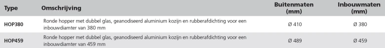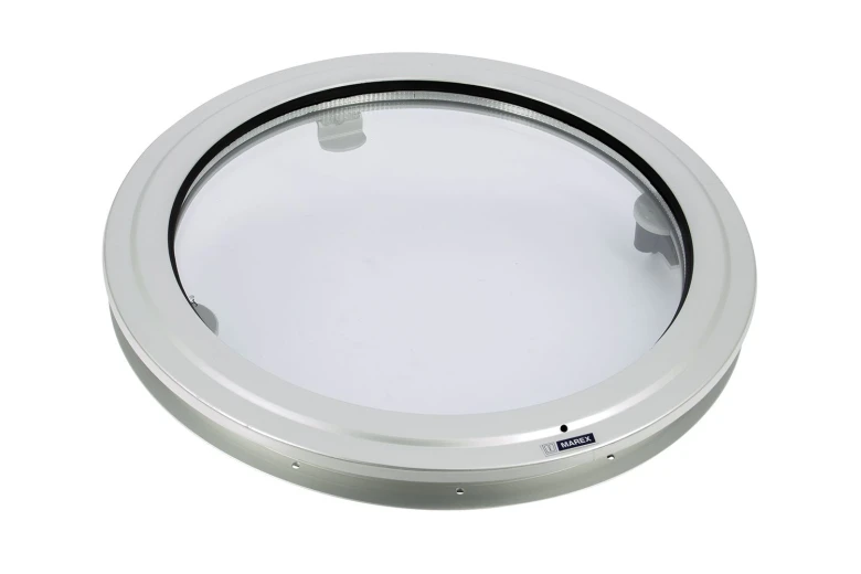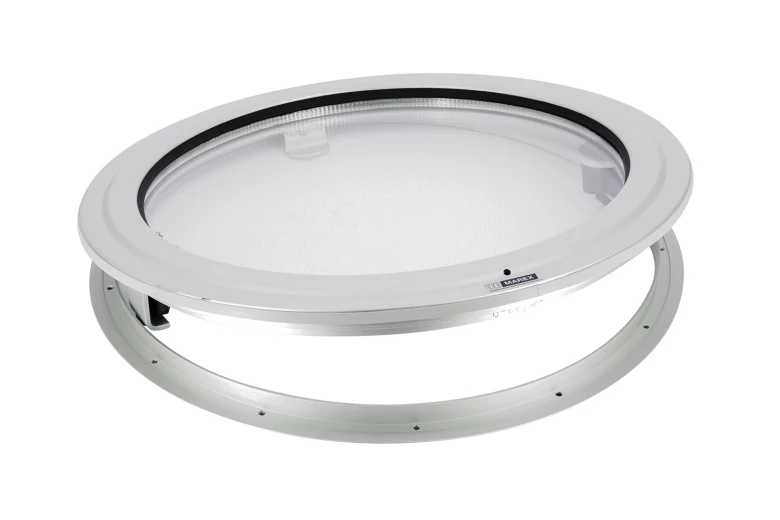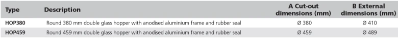 Rund 459mm dobbelt glas hopper med anodiseret aluminiumsramme og gummitætning.