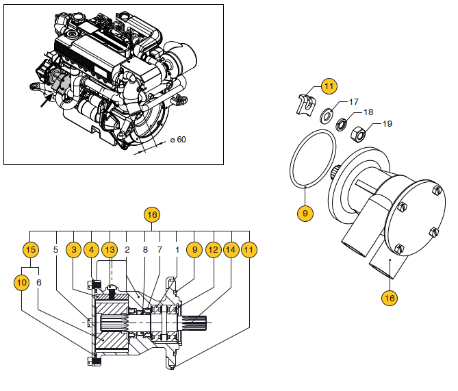 Seawater pump, type 40 Vetus M4.55 M4.56