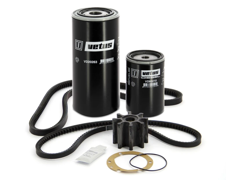 Opgrader din DT(A)66 motor med dette komplette service kit, der indeholder alt, hvad du behøver for at sikre optimal drift. Kit’et inkluderer en impeller, pakninger, brændstoffilter, oliefilter samt V-bælter til bÃ¥de dynamo og vandpumpe. Disse komponenter er specifikt designet til at forbedre motorens effektivitet og forlænge levetiden. Med regelmæssig service og udskiftning af disse nøgledele kan du forhindre nedbrud og sikre en problemfri sejlads. Sørg for, at din motor altid yde sit bedste med dette pÃ¥lidelige service kit.
